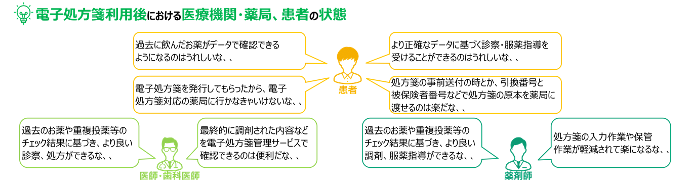 厚生労働省では、電子処方箋の導入に関して「電子処方箋を利用することにより、
